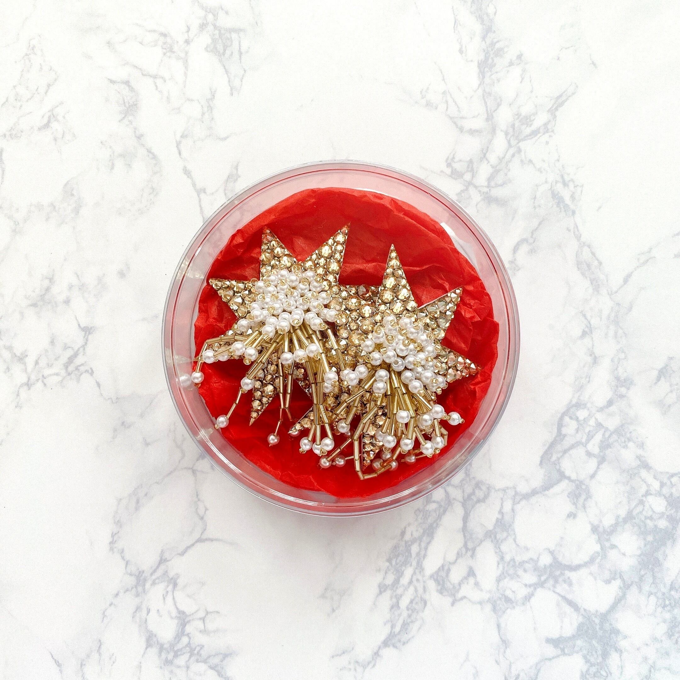 中央に咲き乱れるビーズとパールのパーツがアクセント。